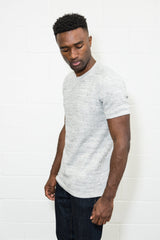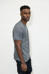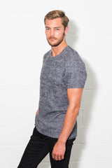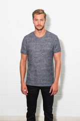 A classic cut tee combined with our soft knit mélange sweater material, the Melange Novelty Tee is a match made in heaven. Clean cut lines provide structure and class while the soft knit provides endless comfort. Our mélange sweater material is both lightweight and breathable. A classic crew neck style and finished hem sleeves this top will be your go-to for lounging and for day wear. This novelty tee is a classic for your closet.