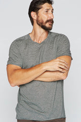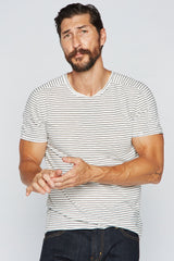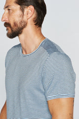 Men's Raw Edge Patch Sleeve Stripe Tee