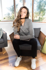 Women's French Terry Raw Neck Pocket Sweater - Heather Grey