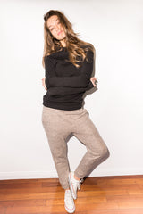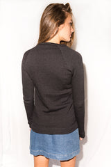 OUTSTANDING SOFT QUALITY, BRUSHED FRENCH TERRY SWEATSHIRT IN BLACK. SLIM FIT PULLOVER . ROUND NECKLINE SHAPE. CUFF AND HEM BAND DETAIL W/ STITCHING.
