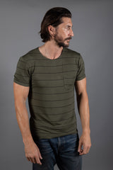 Premium Quality Sailor Pocket Crew Neck Tee in Stripe Pattern