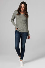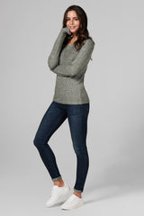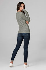 WOMEN'S MELANGE KNIT V-NECK PULLOVER SWEATSHIRT - ARMY