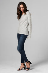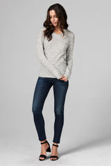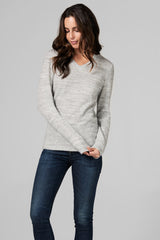 WOMEN'S MELANGE KNIT V-NECK PULLOVER SWEATSHIRT - HEATHER