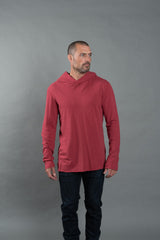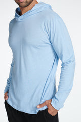 We've taken our customer favorite cotton linen fabrication and turned it into a long sleeve tee hoodie. Breathable and smooth it layers effortlessly or is great on its own. Part linen to reduce wrinkle, increase breathability, and ensure durability. Part cotton to create a soft feeling that will never fade.