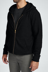 A master class in clean lines and premium hardware. This modern, tailored zip hoodie is cut from a soft-brushed blend of performance cotton with a hint of stretch. Outfitted with a slim cut, kangaroo pockets, and a custom gold Riri zipper up the front, this timeless hoodie transitions seamlessly from work to workout. Each Riri zipper is hand-sanded and assembled in Switzerland for a smooth action that only gets better with age.