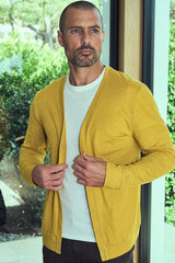 Indulge in our men's tri-blend cardigan sweater, a must-have for your wardrobe. Crafted with our one-of-a-kind fabric blend, it effortlessly conforms to your movements and layers seamlessly. Whether elevated or casual, it will prove to be a versatile and timeless addition to your collection.