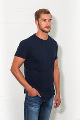 Men's Linen Blend Curved Bottom Crew Neck Tee