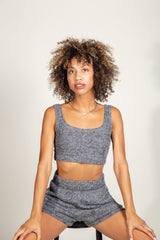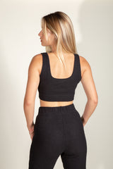 I hope you’re ready to get comfy. This seasonless cropped sweater tank has a square neckline and matching back square cut silhouette. The tank straps are partnered with accent stitching and a thick ribbing cuff at waist. The Quinn tank is bra friendly to allow you to wear with jeans for a cute day top or to lounge around the house. Pairs perfectly with the Gene Soft Knit Jogger or Kennedy Soft Knit Short for a completed set look.