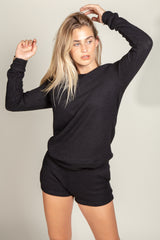 The Audrey Soft Knit Crew Neck Sweater is both seasonless and versatile. This sweater is designed with raglan sleeves, forming an elevated yet casual sweater. The cuffs and hem band details with stitching add extra style, while the breathable fabric makes it perfect for layering with a tee or blazer. Features a soft, lush, sweater mélange knit and a relaxed fit for extra comfort. Pair with our mélange short or jogger for a completed look that is effortlessly chic.