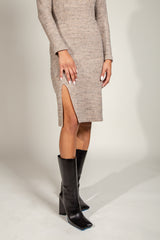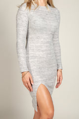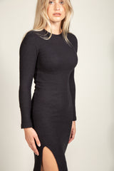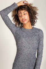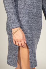 The coziness of a sweater meets the ease of a dress. Warm, soft, and lightweight, this slim sweater dress has a crew neckline, long sleeve, and side bottom slit for a timeless look. The Marilyn is made of our famous soft knit sweater mélange material that is engineered for comfort and cut to elegance. This dress can be worn day to night. Comfort has never looked so luxury.