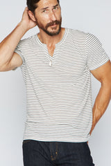 Men's Cross V-Neck Stripe Tee - White / Black