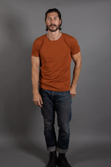 Relaxed fit, double raw edge detail at neckline, raw edge sleeve. Bourne fabrication jersey tee in an array of color options. There's nothing like a great tee, it's a versatile garment you can wear on its own, or dress up with your favorite layer. Perfect as a base layer or alone.