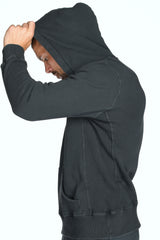 Heavy-weight velour back French Terry Hoodie. The classic hooded pullover silhouette is paired with a distressed garment dye wash. An accent contrast ribbing is affixed to side panels, cuffs, and waistband of hoodie. The premium French Terry fabric is cut to perfection creating an exceptionally soft and sturdy hoodie that adds style without sacrificing comfort. This vintage inspired hoodie is one that will provide warmth and durability, looking even better after each wear. Pair with Briggs French Terry short or jogger for a completed look.