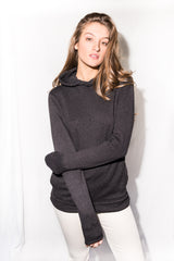 OUTSTANDING SOFT QUALITY, RELAXED FIT, BRUSHED FRENCH TERRY PULLOVER HOODIE IN BLACK. CLEAN FINISHED FRONT FULL POCKETS. DOUBLED HOOD WITH CENTER BACK SEAM. TURN BACK SELF CUFF AND BOTTOM HEM.